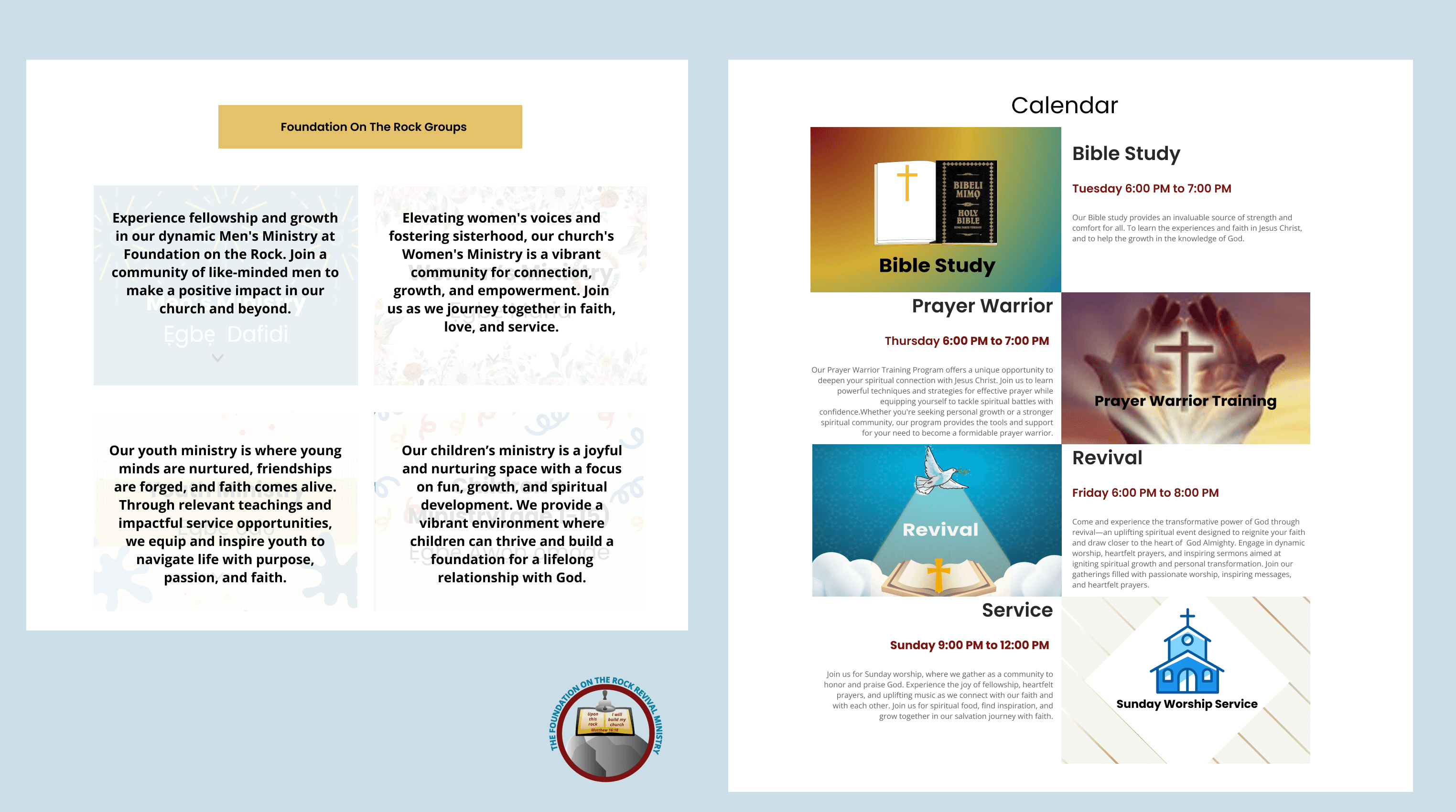 For the promotional content, I crafted accessible, culturally relevant copy for all church communications—including ministries, calendars, and events—and implemented the English-Yoruba translation system to ensure full inclusivity.