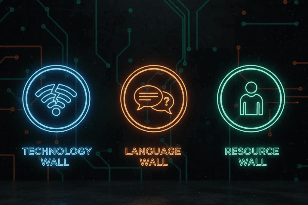 Before I could even think about design, I had to understand the immense constraints we were up against. There wasn't just one problem; there were three huge walls between the community and any digital solution.